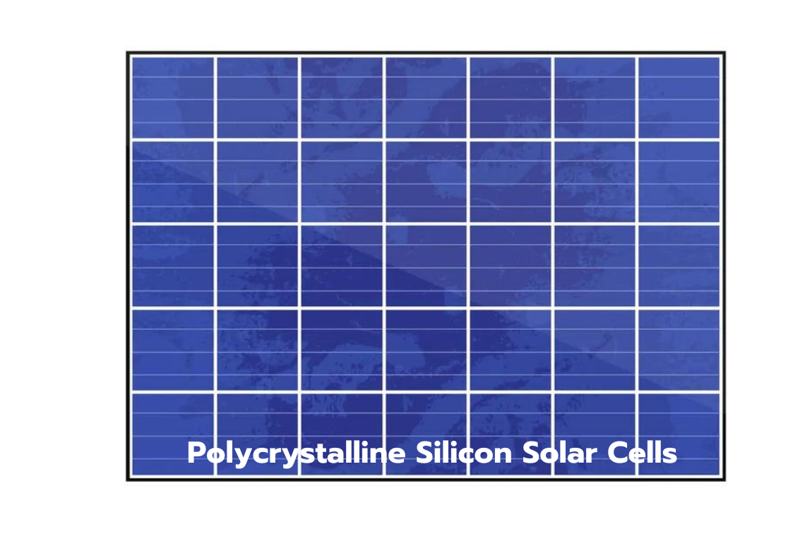 • โพลีคริสตัลไลน์ (Polycrystalline Silicon Solar Cells) หรือชนิดผลึดรวม (Poly-Silicon) มีลักษณะเป็นสีฟ้าหรือสีน้ำเงิน ข้อดีราคาลงทุนต่อวัตต์ ต่ำกว่าแผงอื่นๆ แต่กำลังการผลิตก็ต่ำกว่าแผงอื่นๆ เช่นกัน